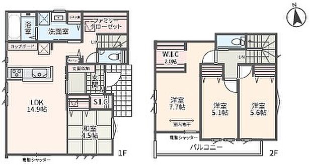 | 間取り | 4LDK 間取り内訳:リビングダイニングキッチン 14.9帖(1階)・和室 4.5畳(1階)・洋室 7.7帖(2階)・洋室 5.6帖(2階)・洋室 5.1帖(2階)・その他 2帖(2階) |