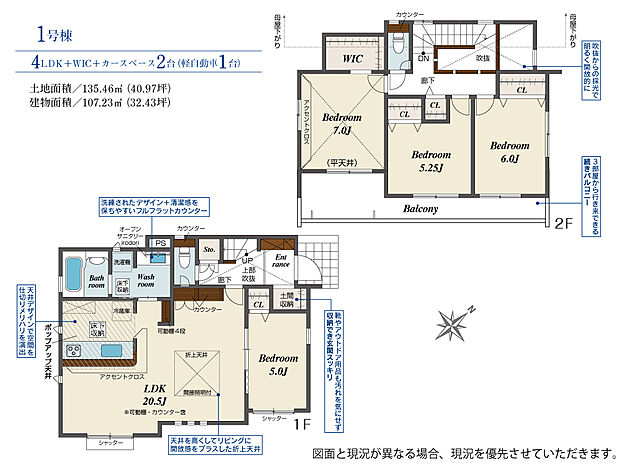 - 「建築条件付き土地」の「建物プラン例」は、土地購入者の設計プランの一例であり、プランの採用可否は任意です。