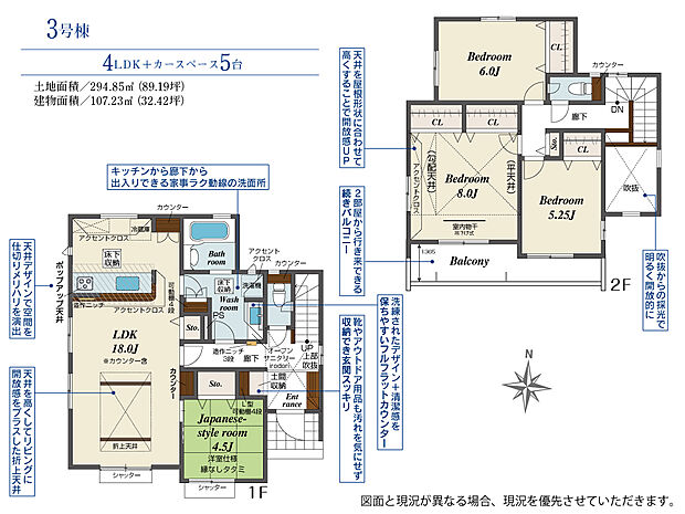 | 建物面積 | 98.75m2(約29.87坪)~107.23m2(約32.43坪) | ||