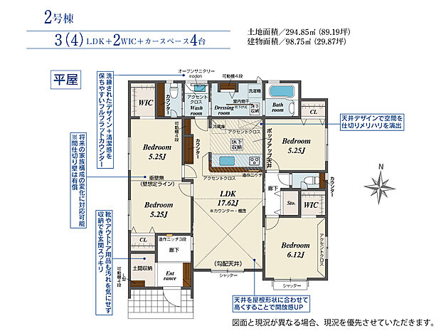 | 建物面積 | 98.75m2(約29.87坪)~107.23m2(約32.43坪) | ||