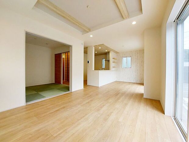 【全2棟!海まで徒歩7分!南道路で陽当り良好!駅まで徒歩圏内】カースペース3台可2部屋から行き来できる続きバルコニー玄関吹抜や折上天井で開放的な空間