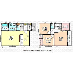 | 間取り | 2LDK 間取り内訳:リビングダイニングキッチン(1階)・洋室(2階)・洋室(2階)・洋室(2階)・洋室(2階) |