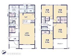 | 間取り | 4LDK 間取り内訳:洋室 6.5帖(2階)・洋室 7.2帖(2階)・リビングダイニングキッチン 18帖(1階)・和室 4畳(1階)・洋室 6帖(2階) |