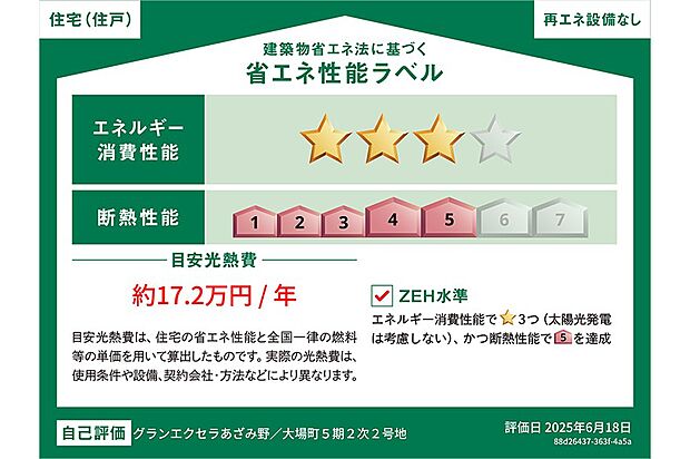 星マークの数が多いほどエネルギー消費性能が高いことを示しています。再エネ設備のない住宅は★0~★4の5段階評価、再エネ設備がある住宅は★0~★6の7段階評価となります。