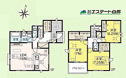 | 間取り | 3LDK 間取り内訳:リビングダイニングキッチン 16帖(1階)・洋室 7.2帖(2階)・洋室 7帖(2階)・洋室 6.2帖(2階) |