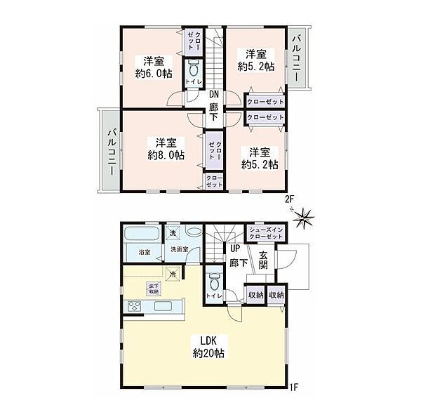 | 間取り | 4LDK 間取り内訳:リビングダイニングキッチン 20帖(1階) |