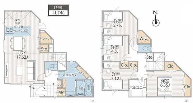 | 間取り | 4LDK 間取り内訳:リビングダイニングキッチン 17.6帖(1階)・洋室 6.3帖(2階)・洋室 5.1帖(2階)・洋室 5.7帖(2階)・洋室 4.5帖(2階) |