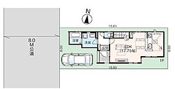 ご家族が集まるLDKはゆとりある17畳。カースペース付き新築戸建てです。