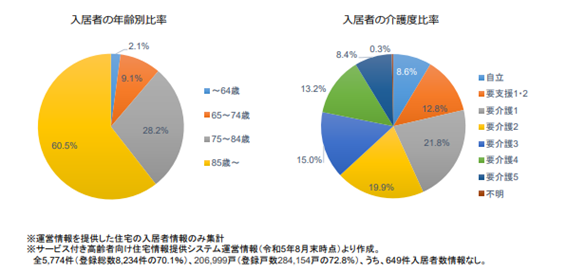 サ高住は2011年にスタートし、2023年の調査時点で12年が経過しています。この間に入居者の年齢は上昇し、要介護状態が進行していると考えられます。