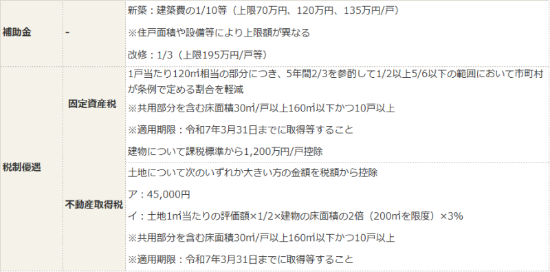 サ高住では、一定の要件を満たすことで以下のような補助金や税制優遇を受けることができます。