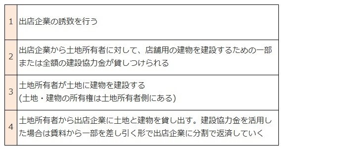 またリースバック方式の場合は店舗からの建設協力金で建物を建てられることが多く、初期投資費用がかからないケースが多いです。