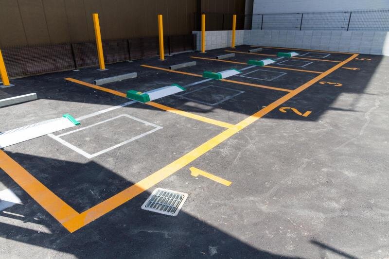 1台あたりの駐車スペースは、最低横幅2.5m、高さ5mは必要で、大型車の利用も考えるのであれば幅は3m以上、さらに車椅子利用者の駐車も考慮するのであれば幅3.5mは確保したほうがよいです。
