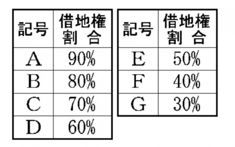 | ・アパートの建っている土地の路線価は30万円、面積は300 m2(奥行価格補正等は考慮外) |