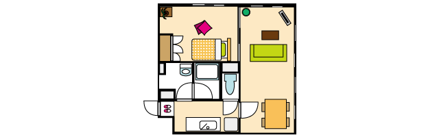 1LDKの場合、玄関を入ってまずLDKがあるタイプと、廊下などがあり最初に個室、その先にLDKがあるタイプがあります。
