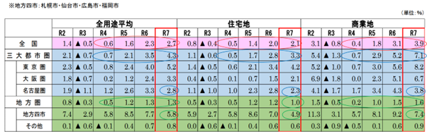 | 都市 | 価格の上昇が見込まれます。東京都心、大阪・名古屋の主要エリアでは不動産需要が依然として高く、とくに商業地や高級マンションは海外投資家の関心も強く、安定した市場が維持されるでしょう。 |