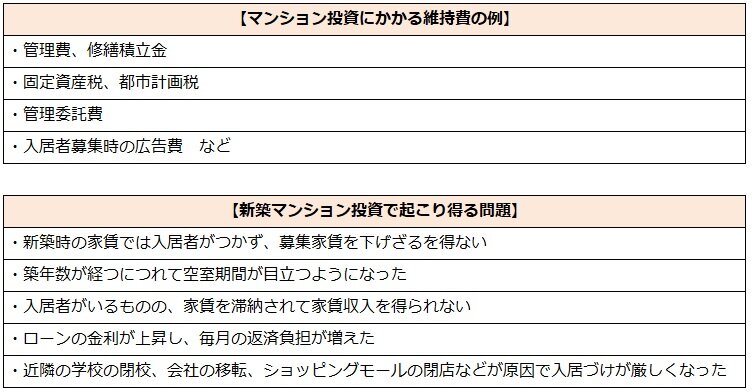 また、新築マンション投資を続けていると、さまざまな問題が生じる場合があります。こちらも合わせて確認しておきましょう。