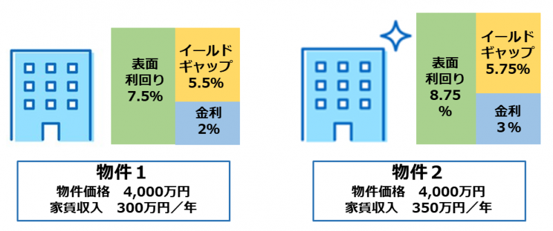 | イールドギャップ | 物件1 | 7.5%-2%=5.5% |