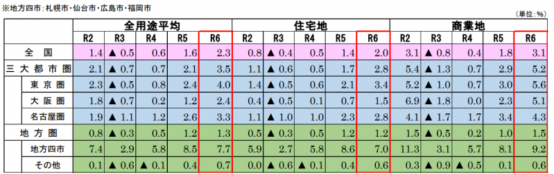 2024年の全国の地価公示概要
