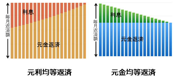 下記のグラフを見れば、それぞれの返済方法における元金と利息の状況がわかります。