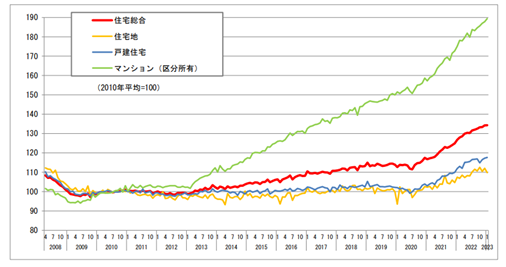 その後、コロナ禍でも金融緩和による低金利政策が継続して今に至っていますが、不動産価格も調整局面になりつつあります。
