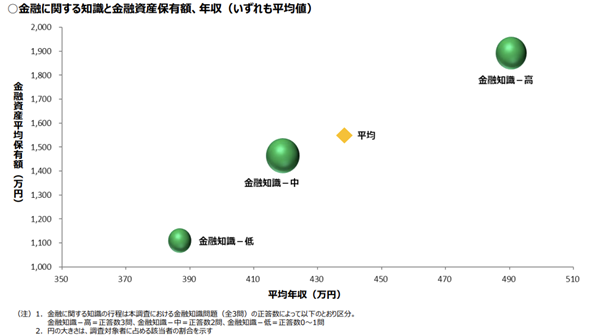 金融リテラシーの高さは資産形成額にも関係しており、日本証券業界が実施した調査でもそのことが明らかになっています。