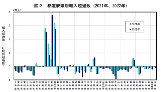 住民基本台帳人口移動報告では、市区町村別に転入者数がどれくらいあるのかを総数及び年齢層別に示している資料もあります。このような資料を見て、不動産投資の検討を行っているエリアにおける将来性をじっくりと確認し、判断の目安にしてみるのも一案です。
