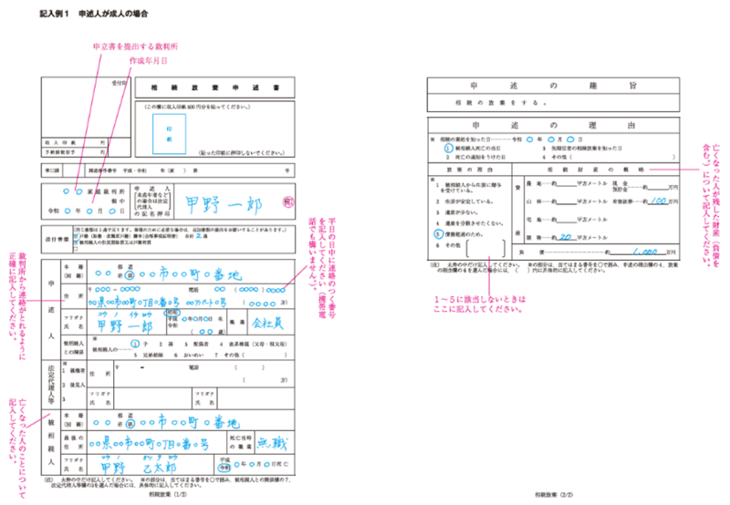 申述書の書き方がわからない方は、裁判所ホームページに記載例が公開されていますので、そちらを参考にするとよいでしょう。それでも不安な人は、司法書士や弁護士などの専門家に相談してみましょう。