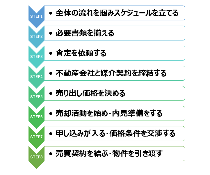 売却完了まで、準備を始めてから早くても3か月、通常6か月程度の期間を見込んでおく必要があります。
