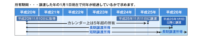 譲渡所得税は不動産の所有期間によって税率が変わります。