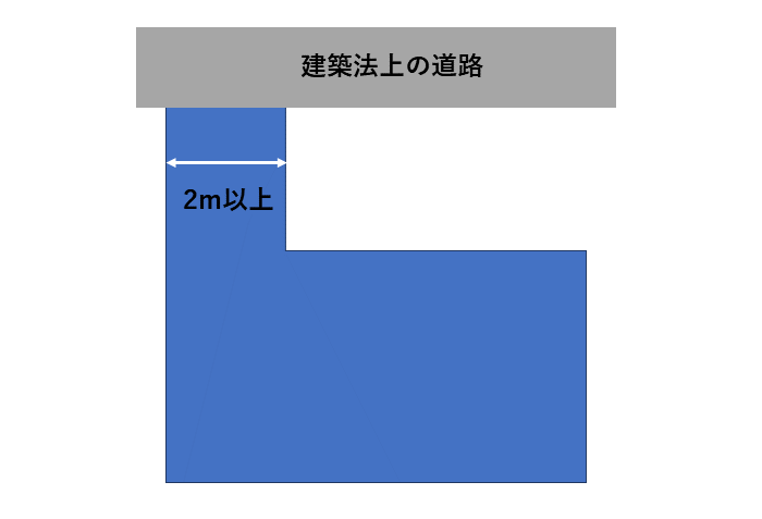 | 1. | 建物を建築する際、その土地の間口が建築基準法上の道路に2m以上接していなければならない |