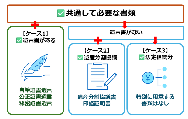 すべての場合に共通して必要な書類と、3つのケース別の必要書類についてお伝えします。