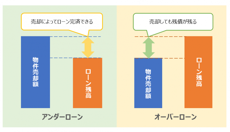 住宅ローン残債を売却代金で完済できる場合を「アンダーローン」、売却代金がローン残債を下回ってしまう場合を「オーバーローン」と呼びます。