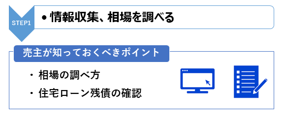 具体的には、相場やローン残高の把握など事前の調査から始まり、不動産会社の査定を経て、正式に不動産会社へ媒介(仲介)を依頼して売却活動がスタートします。買主が見つかれば、契約し、準備が整った後、決済・引き渡しとなり、売却が完了します。