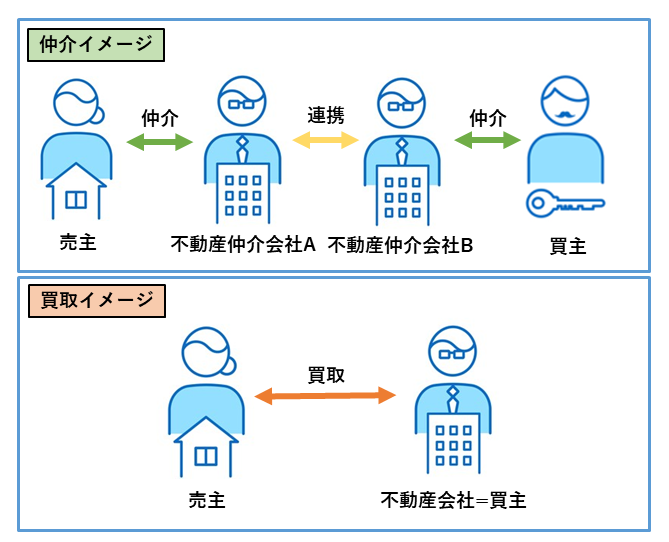 仲介は、買主がいつ現れるかわかりませんが、買取は条件が折り合えば、すぐに売却できるという点で大きく異なります。なお、仲介よりも買取の方が売却価格が安くなる傾向があります。