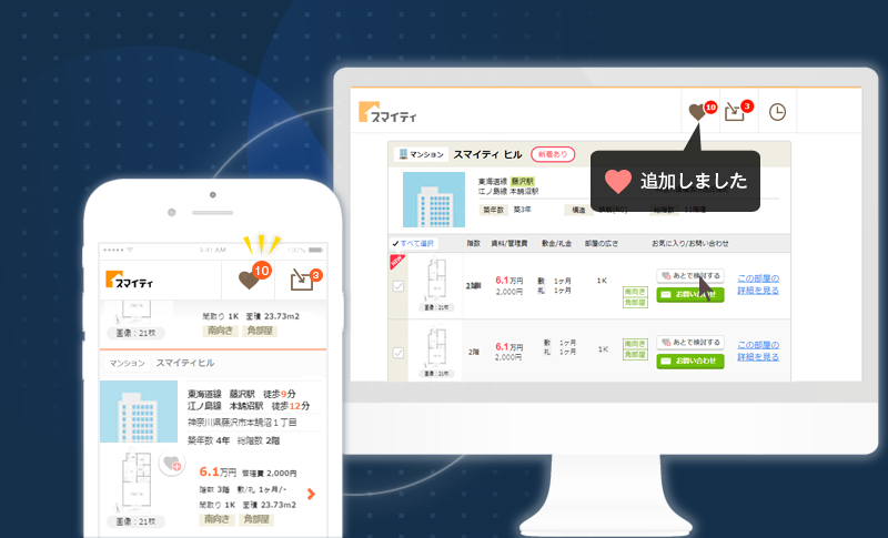 今見ているお気に入り、保存した条件、履歴がログインなしで簡単に他のデバイスで閲覧できるようになります。